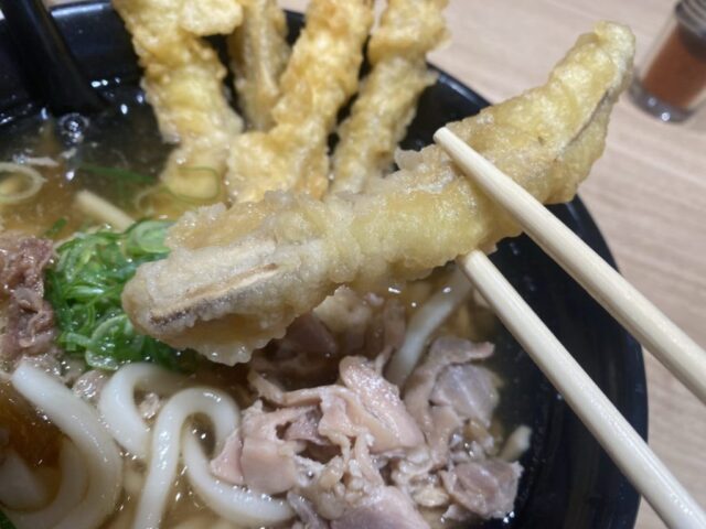 私はかしわごぼ天(5本)のうどんを注文しました。