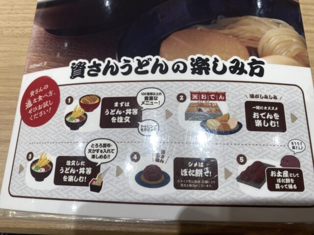 メニュー表には「資さんうどんの楽しみ方」も記載されていたので注文前に目を通してみてくださいね。