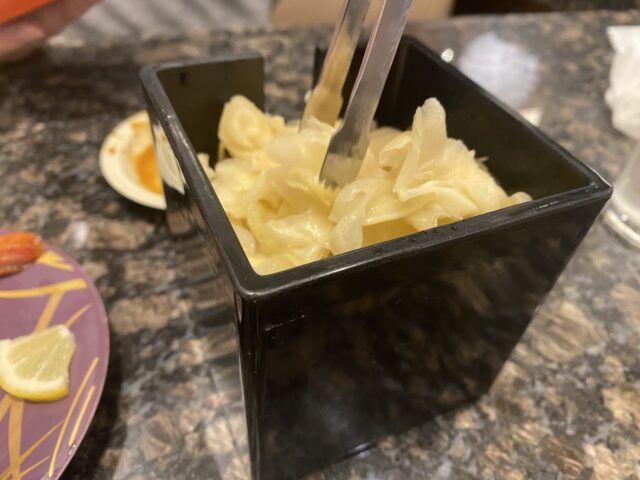席にはガリが入った箱があります。