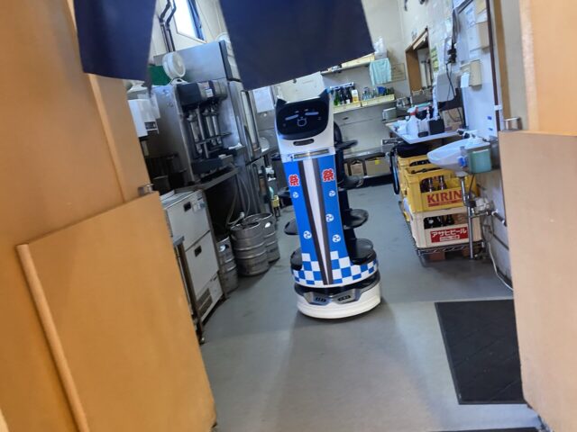 レジへ向かう途中に、配膳ロボのにゃんこさん発見。