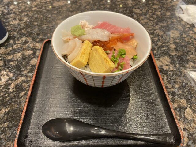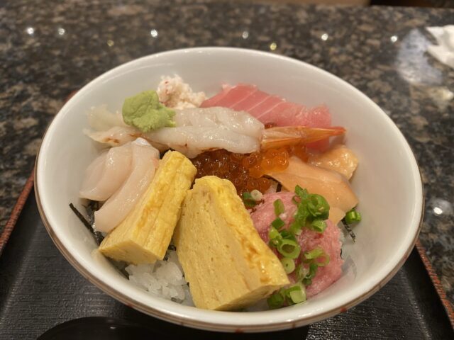 ネギトロはご飯がすすむし玉子焼きは食べ応えあるし、ほたてや海老にいくらと、バラエティに富んでいてこれはなかなかいいですね。