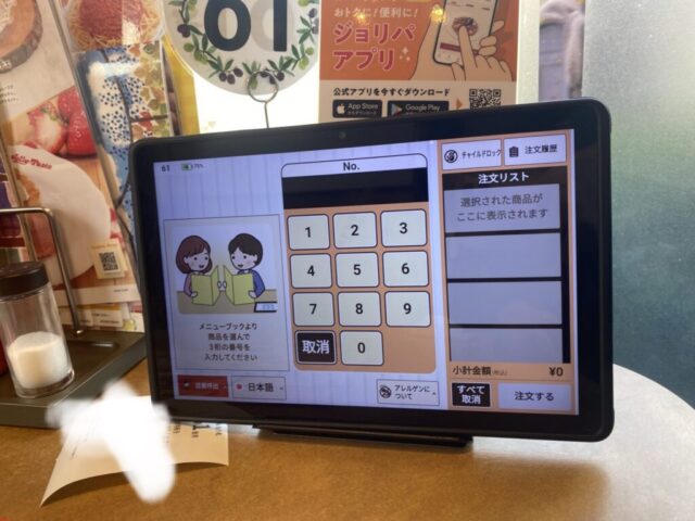 では注文はタブレットなのでどんなかんじか見てみましょう。