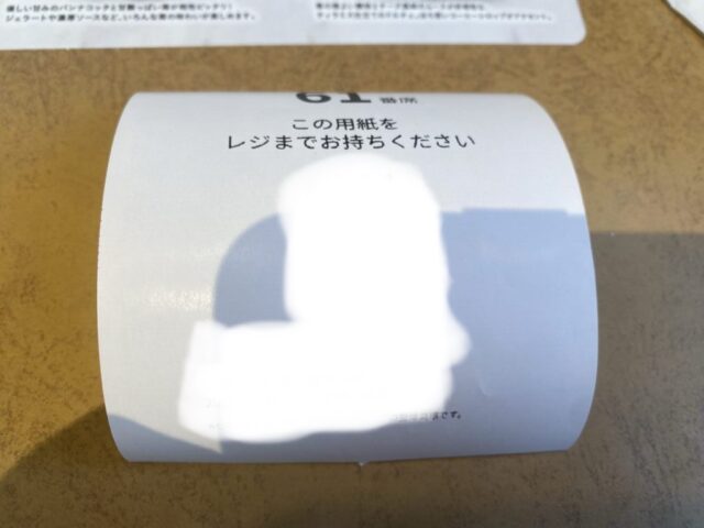 こちらは案内機から出てきた、席番号が記載された紙です。
